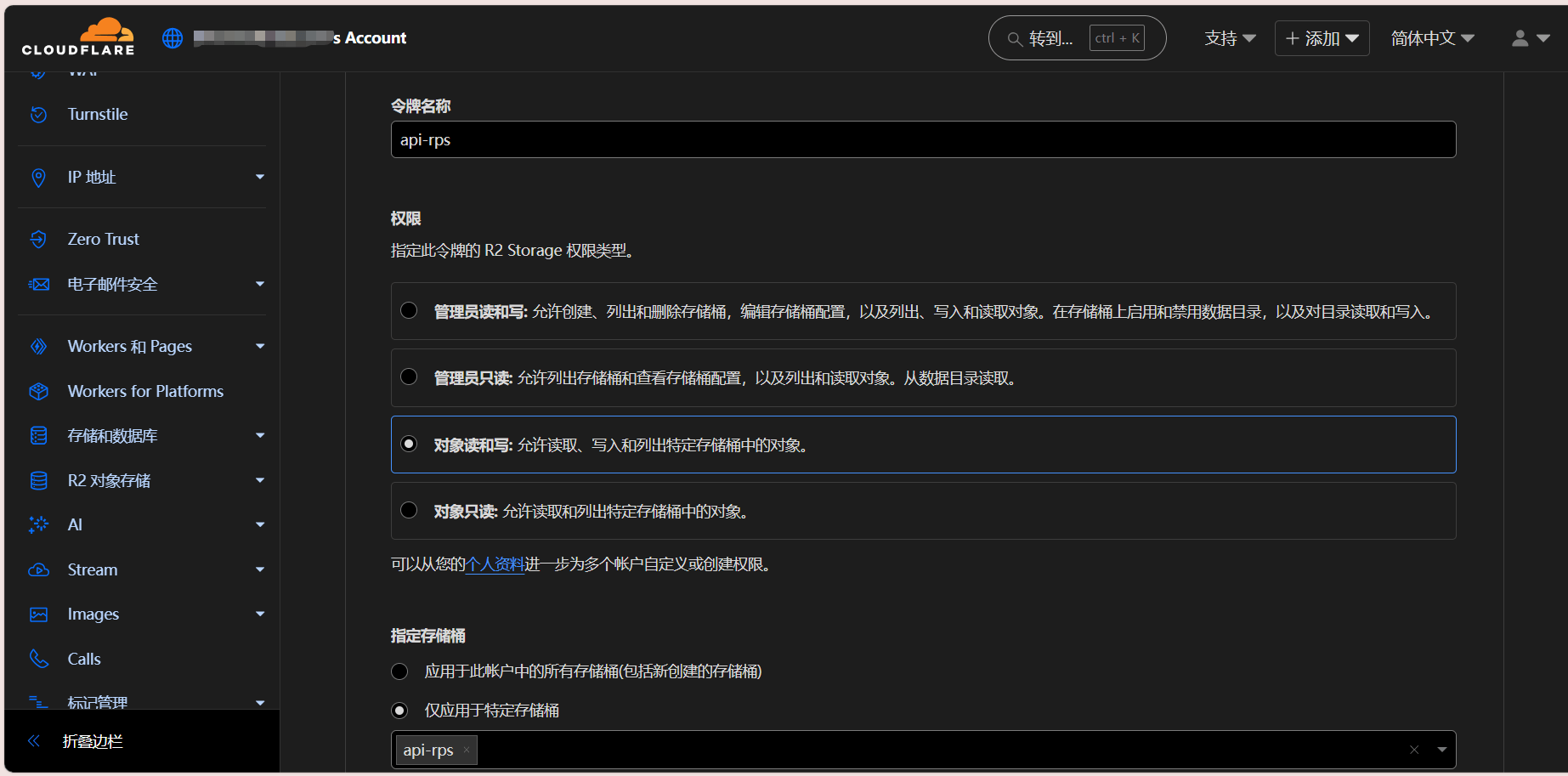 存储桶名称你可随意填写,能辨别即可,笔者在此以api-rps为例
