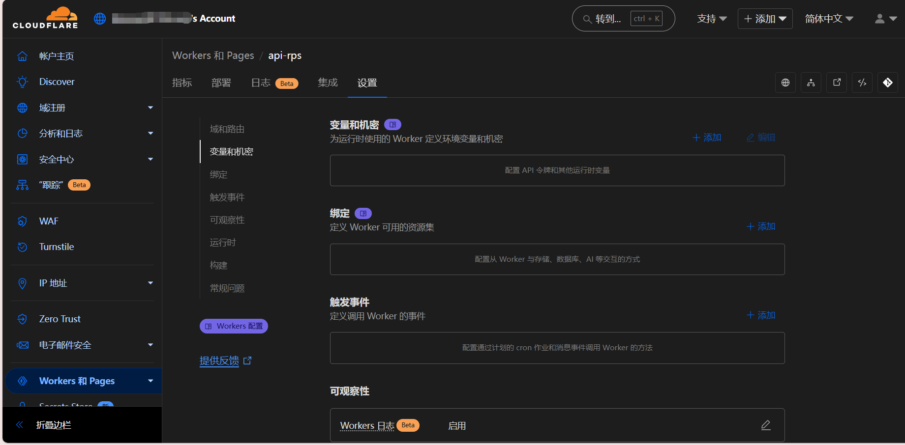 看到域和路由,将workers.dev后面跟着的那一串链接(以workers.dev结尾的)复制,然后拉出去访问